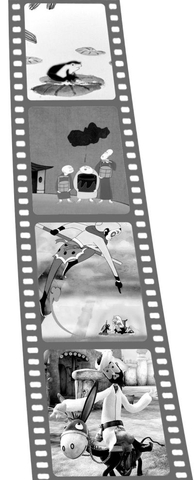 动画片《小蝌蚪找妈妈》、《三个和尚》、《大闹天宫》、《阿凡提的故事》。
