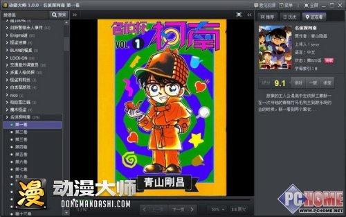 那么,在动漫大师里可以看到哪些漫画呢?这个完全不用担心啦,看不完的漫画新作、最新最热的漫画连载都可以在这里找到。比如软件界面右方给大家推荐的“名 侦探柯南”系列,就是相当不错的一部漫画作品哦!如图02所示,在软件里看《名侦探柯南》时,还可以通过单击、滚轮多种方式来翻页哦。精彩漫画看着,也就 不容易磕睡啦!