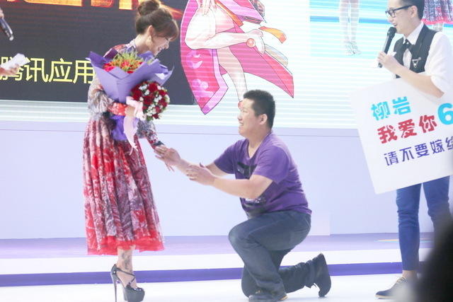 活动现场,“性感女神”柳岩到场助阵,并献唱《男神》掀热场上气氛,引得宅男连声尖叫。在中国版《我们结婚吧》,柳岩与2PM组合成员黄灿盛谈恋爱谈得火花四射。现场也有一位韩国欧巴前来献花,看到一捧玫瑰,柳岩打趣道:“其实送三枝就够啦,这样成了新娘捧花。”有意思的是,还有一位痴情粉丝举着“柳岩我爱你六年,请不要嫁给韩国人”的大牌子前来,并跪地告白,场面颇为动人。