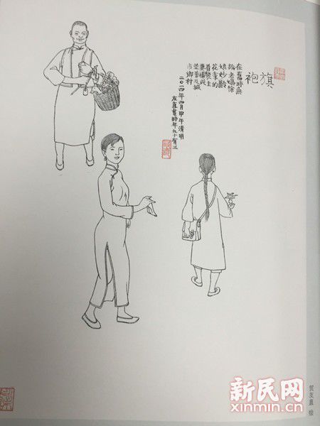 图说:我国著名的连环画大师贺友直为非遗项目“海派旗袍制作技艺”绘制的连环画。新民晚报新民网 萧君玮 摄